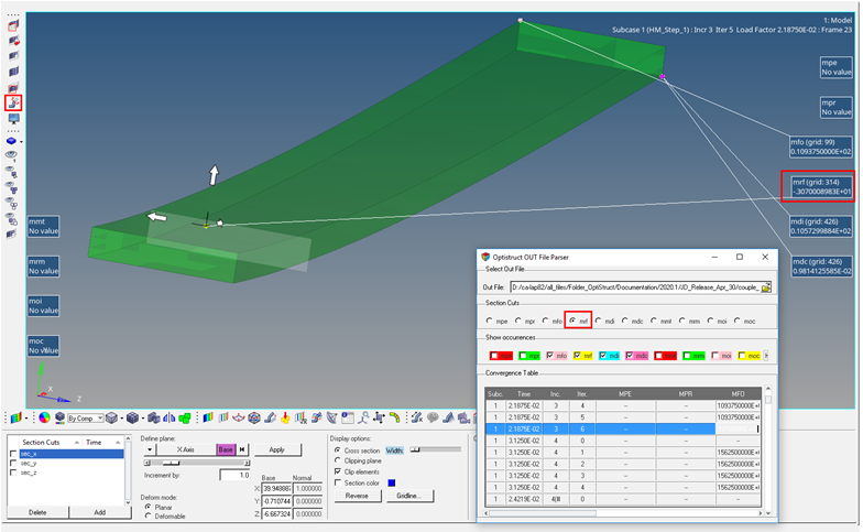 そのためには、<filename>_nl.h3dファイルと、_nl.outファイルに出力される指定された間隔の収束テーブル情報の2つのファイルが必要です。Convergence Table情報は現時点では、大変位非線形解析についてのみサポートされています。