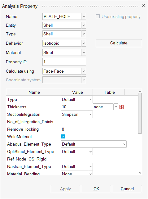 Analysis Propertyダイアログが開きます。