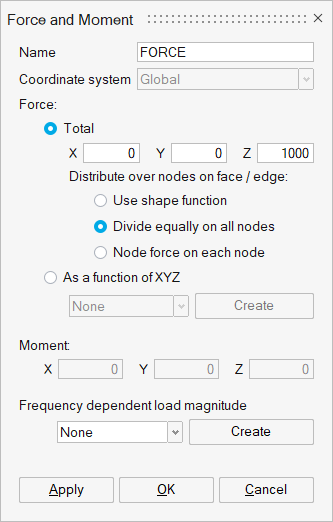 Force and Momentダイアログで、以下のようにパラメータを定義し、OKをクリックします。