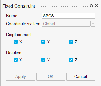 - Fixed Constraintダイアログで、NameにSPCSと入力します。