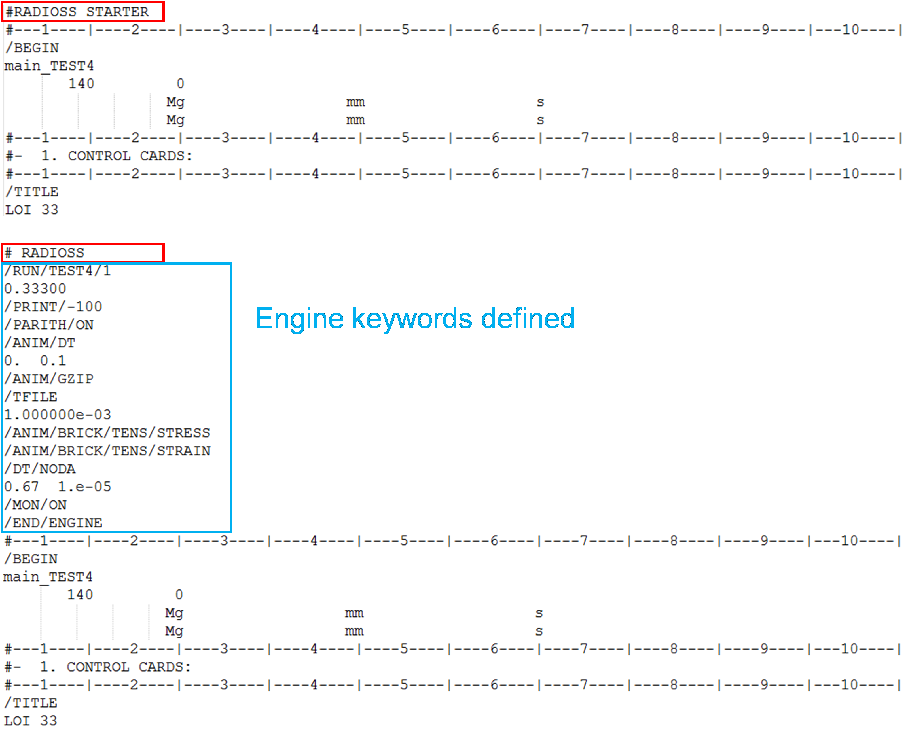 “#RADIOSS STARTER”という見出しを使用するか、Engineキーワードを追加します。