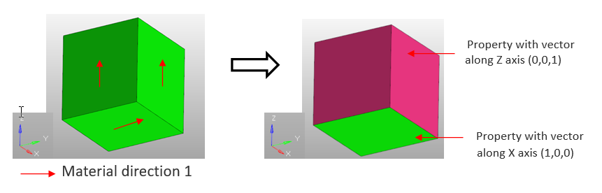 材料が実際には直交異方性(E11=E22かつG12=G23=G31=E11/(2*(1+nu12))でない場合は、ベクトルを変更しても結果は変化せず、任意のベクトルを指定できます(VX=VY=VZ=1)。