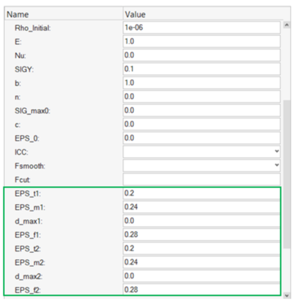 材料則LAW27とLAW36では、引張での破壊が定義されている場合、いくつかの規則に従う必要があります。この例で、ソルバーは材料521002880について、 となっているが、この状態は許可されていないと報告しています。