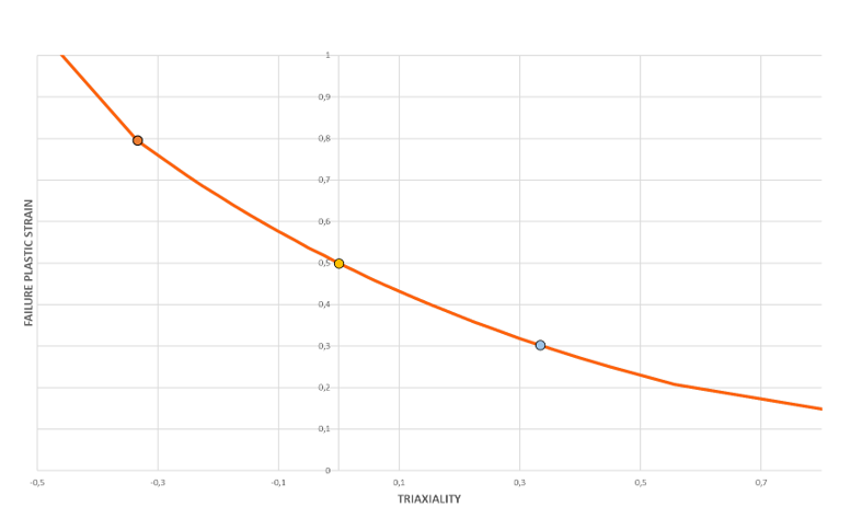 the element reaches the targeted failure plastic strain for a given triaxiality