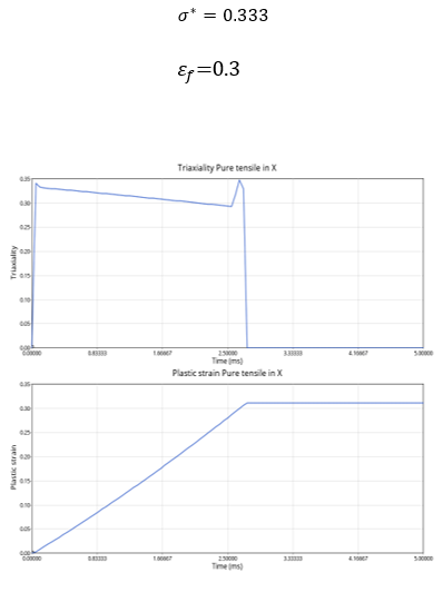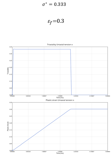 For each loading, the triaxiality and plastic strain curves are