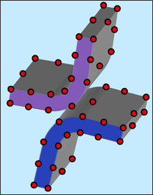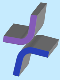 インターフェースTYPE17では2次曲面間の接触をLagrange乗数法を用いてモデル化することができます。これは2つの2次曲面の接触を直接解くことができるTYPE16インターフェースの一般化形式です。この接触は滑り(摩擦なし)または固着をサポートしています。図 2. インターフェースTYPE17 – 2次曲面と2次曲面の接触