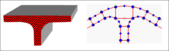 ソリッド-シェル要素、特に、SHELL16は大きな結合部分のある厚肉シェル構造をモデル化するのに有用です(図 2)。板厚と材料特性に関しては、2節点間の最短距離に比例して時間ステップは小さくなり得ます。図 2. ソリッド-シェル要素の適用
