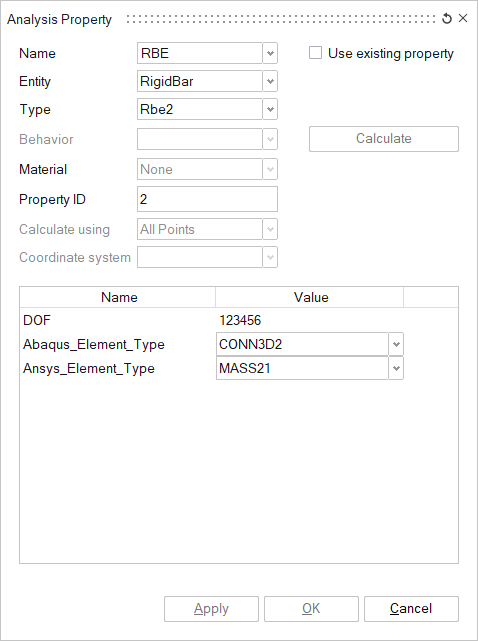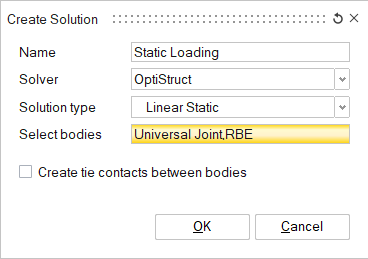 - From the Assembly tab of the Model Browser, select the Universal Joint and RBE bodies.