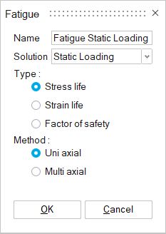 The Fatigue Solution is created in the Solution tab of the Model Browser. -