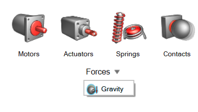 Gravity is applied to the entire model and is saved with the model file. You can turn gravity on and off using the settings in the Run Optimization, Run Analysis, and Run Motion Analysis windows.