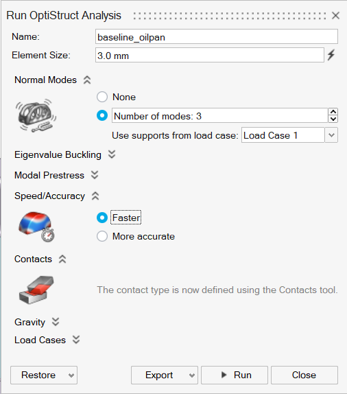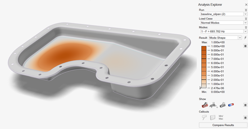 - Run a baseline analysis of an oil pan to establish realistic design targets