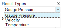 Fluids 分析会生成多种不同的结果类型,包括:表压、速度和温度。点击结果类型列表中的对象,查看相应的结果。
