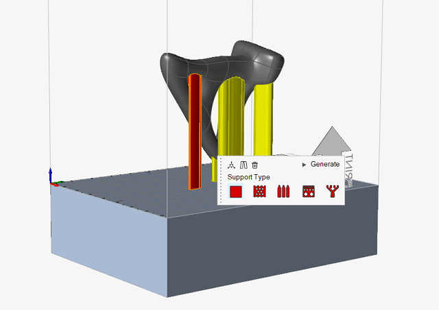 注: 要将现有零件指定为支撑,使用打印零件工具上的卫星图标。