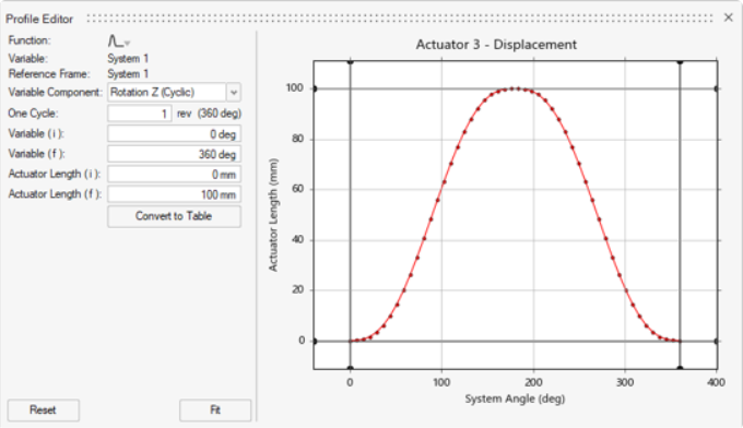 通过轮廓编辑器中的多信号函数类型,您可以在单个运动分析期间快速、轻松地定义由多个基于时间的变化组成的的转动电机和平动电机输入。