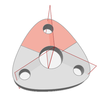 即便使用非周期性的设计空间或载荷,也可以生成如海星、螺旋桨、轮毂等周期重复的形状。周期性形状共分两种,一种是分段对称形状,一种是分段不对称形状。“周期对称”工具用于创建分段对称形状,如下所示。(使用“周期的”工具创建分段不对称形状。)图 1. 以对称为基础的周期重复. “以对称为基础的周期重复”可创建以红色放射平面为对称面的自对称分段。红色阴影区是其中一个分段。