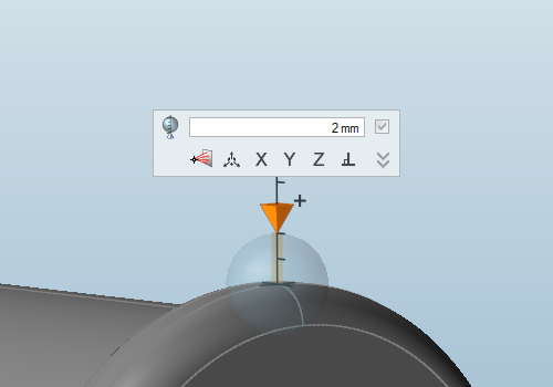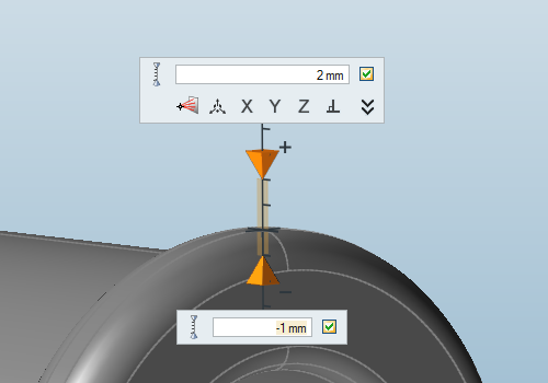 - 点击并拖动橙色的金字塔,或在小对话框的文本栏中输入一个值,以改变此位移约束的大小。