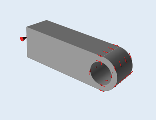 牵引力可施加于圆柱面,并与该面相切。这模仿零件之间的接触力,例如摩擦力。