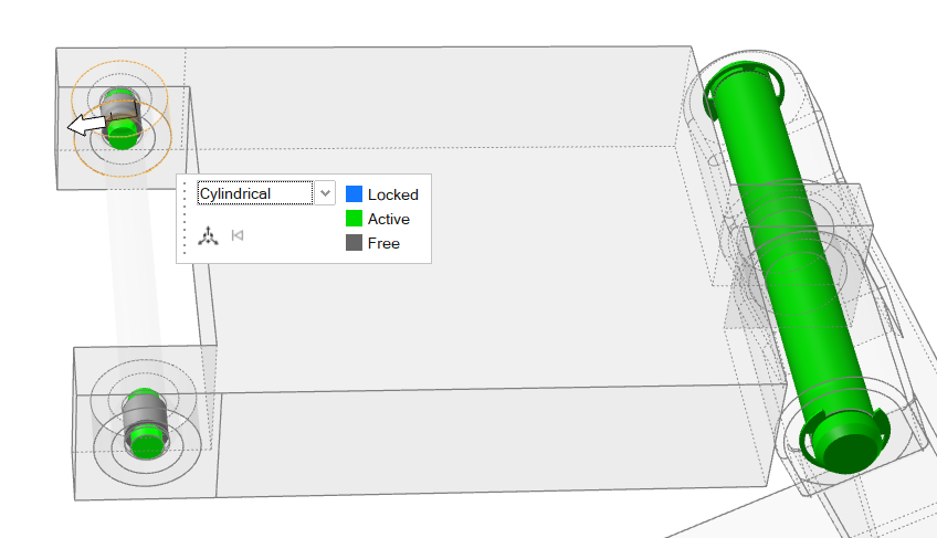 注意:该操作会创建四个铰接,其中两个为模型活动零件之间的铰接,另外两个是将 Y-Bracket 连接至地平面的圆柱铰接。