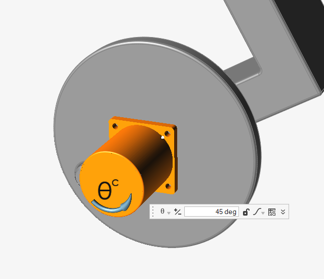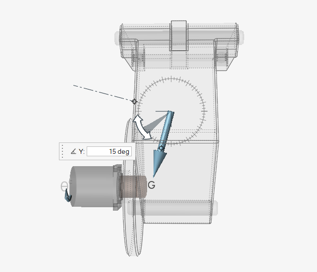 调整重力向量的方向,方法为:点击并拖动旋转器,或在小对话框中输入 15 deg,将向量向 Flywheel 倾斜,如图所示: