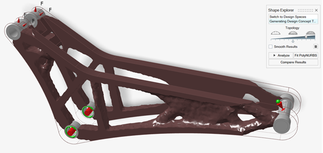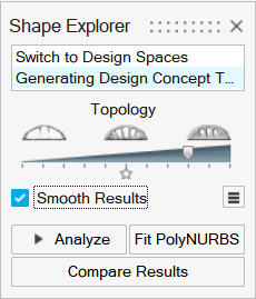 将形状浏览器上的拓扑滑块放置在从最右边开始的第二个刻点处。生成的形状会在该点与之完全连接,这对于使 PolyNURBS 自适应结果非常重要。分析结果和 CAD 转换将根据滑块位置的不同而异。