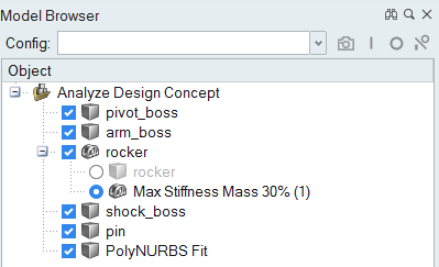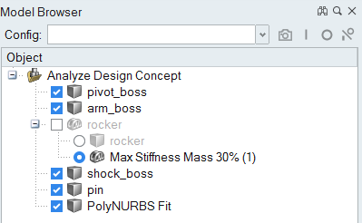 按 F2 键打开模型浏览器。确认生成设计概念教程最大刚度质量 30% 结果转换被选中。