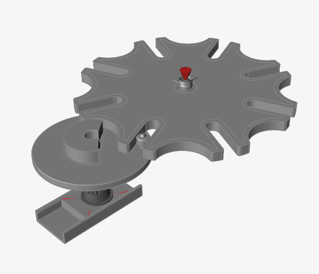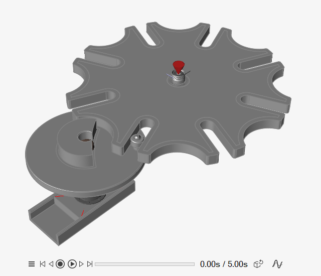 打锤零件正好穿过槽轮,因为还没有定义零件之间的接触。过一会儿,滑块又会从槽轮中抽回。