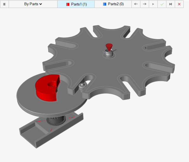 该零件会变成红色,Parts1 计数会递增至 (2)。
