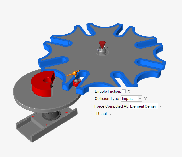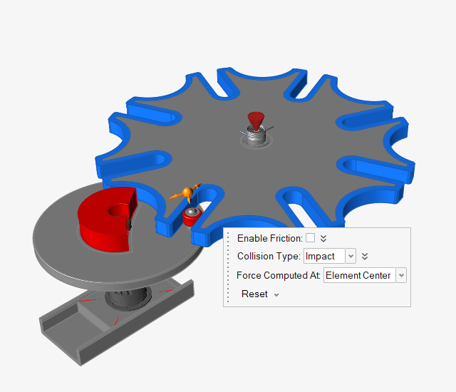 3. 点击“分析运动”工具上的快速运行按钮,以查看运动中的模型。让模型运行完成,但不要退出复查模式。此时,零件将不穿过彼此,您也会看到 3D 接触行为。