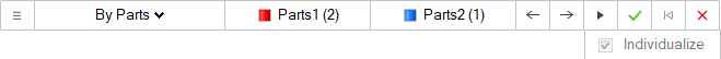 该零件会变成蓝色,Parts2 按钮现在的计数为 (1) 个零件。