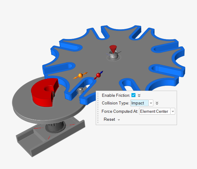 2. 接触区域的力矢量现在可以使用笔直的蓝色箭头指示切向分量(代表摩擦),法向力分量则显示为红色。