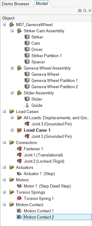 1. 在“模型浏览器”中,点击运动接触 2