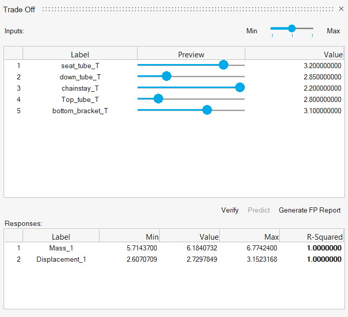 验证是一种探索,其中运行单个求解器作业时,输入设计变量值的设置与它们在平衡面板中的设置相同。