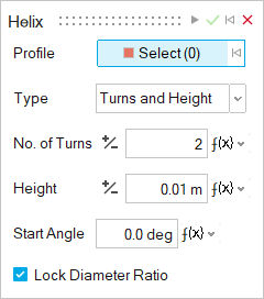 更改螺旋线的方向(顺时针或逆时针) - 在操作面板中,为类型选择转数和高度或转数和斜度。