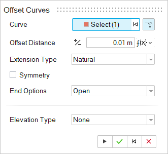 在源曲线的每一边创建偏移曲线 在操作面板中,启用对称。 修改形状 在操作面板中,选择以下其中一个结束选项: - 打开:保持偏移曲线开放。