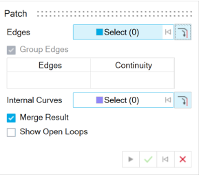 - 要合并目标曲面和补块曲面,请打开合并结果。打开此选项可使补块成为新零件。