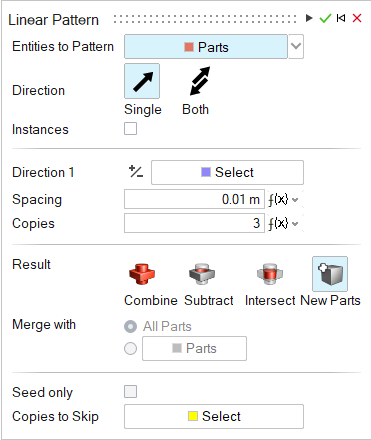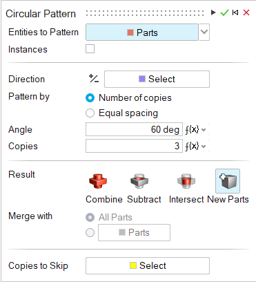 - 零件注: 要将模式中的所有零件变成初始零件的关联复制,请开启 Instances(关联复制)。