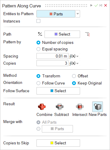 - 偏移:对于每个副本,保持曲线与原始实体之间的法线距离。