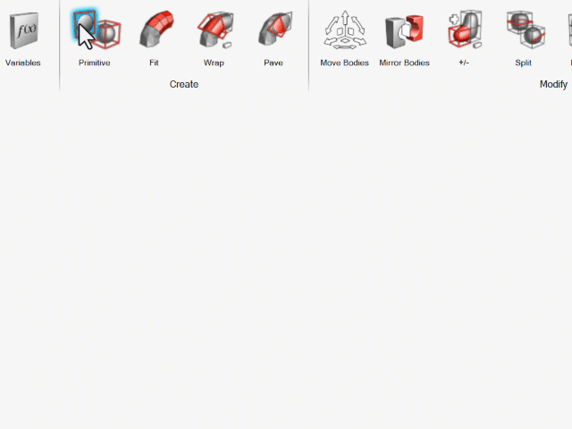使用“基元”工具在选中的对象周围创建单一的 PolyNURBS 实体或曲面,或创建一个实体或曲面作为新模型的起点。如果想建立没有包覆或铺设的 PolyNURBS 几何体,则应从此工具开始。