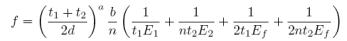 针对连至板块以及板块之间的连接(常见于航空工业),常用于预估螺栓连接刚度的方式是使用 Huth-Schwarmann 方法。该刚度值可使用以下公式计算得出: