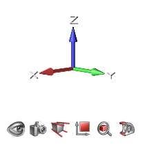 视图控制 视图控制位于模型视窗左下角。 将光标悬停在彩色的轴上,打开视图旋转器和标准视图。 使用这些图标可以: 激活显示/隐藏模式 。 存储或召回自定义视图 ,以供日后使用。 在透视 和正射 投影之间切换。 将视图旋转至最近的主轴 。 所选自适应 视图中的零件。 对模型进行剖切 。