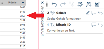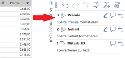 Ziehen Sie hierzu eine Änderung einfach aus der Änderungsverlaufliste auf eine andere Spalte in der Tabelle. Diese Spalte muss denselben Datentyp haben wie die Spalte, auf die die Änderung ursprünglich angewendet wurde.
