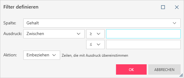 Geben Sie Ihre Filterkriterien in das hierfür vorgesehene Feld rechts vom Feld Ausdruck ein.