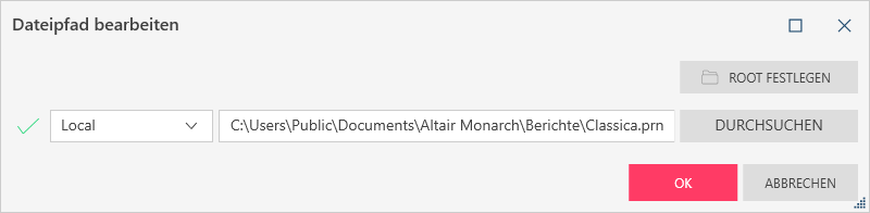 Links des Dateipfads wird ein Häkchen eingeblendet, sofern der ausgewählte Dateipfad gültig ist.