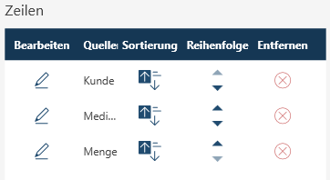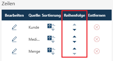 Die Reihenfolge der Felder für die ausgewählten Zeilen/Elemente/Messwerte wird verändert.