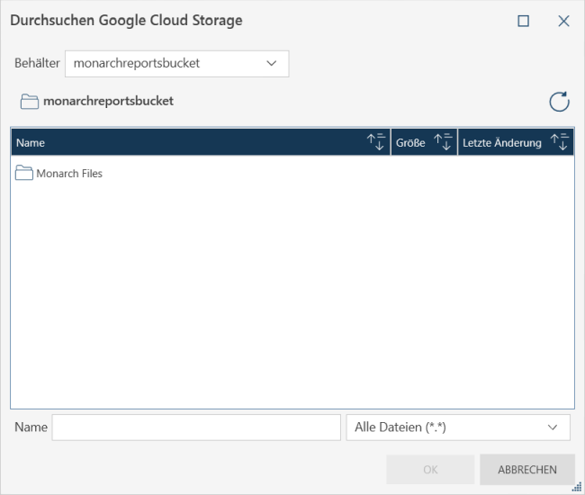 Mit einem Standard-Cloud-Browser können Sie Daten aus Google Cloud Storage importieren und dort speichern/exportieren.