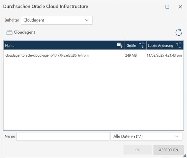 Mit einem Standard-Cloud-Browser können Sie Daten aus Oracle Cloud Infrastructure importieren und dort speichern/exportieren.