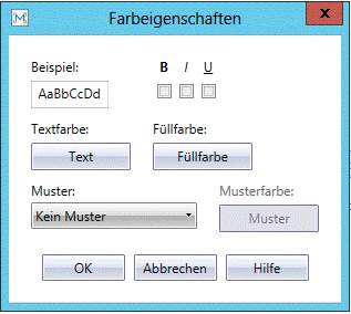 Über dieses Dialogfeld können Sie die Farbeinstellung für verschiedene Teile der Summierung ändern. Dieses Dialogfeld ermöglicht Ihnen beispielsweise, die Textfarbe, Füllfarbe sowie die Musterart und -farbe für die Zellen der aktuellen Summierung zu ändern. Auch können Sie dieses Dialogfeld dazu benutzen, den Summierungstext fett oder kursiv zu drucken bzw. zu unterstreichen.