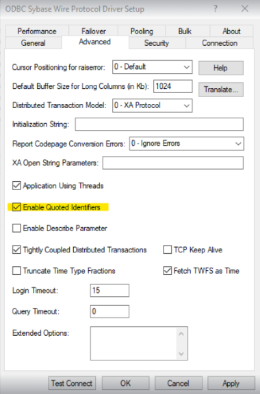 Aktivieren Sie „Enable Quoted Identifiers“ in den ODBC-Einstellungen: