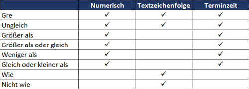 Beachten Sie bitte, dass alle Zeichenfolgewerte mit dem Zeichen % qualifiziert werden müssen. Um beispielsweise einen Filter festzulegen, mit dem nur Nachnamen angezeigt werden, die mit "SMITH" beginnen, definieren Sie Folgendes: LastName LIKE %SMITH%