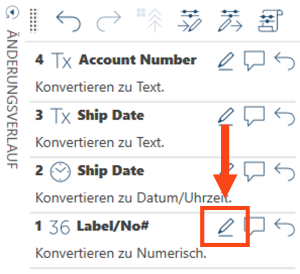 Sie können die Änderungen des Spaltentyps im Bereich Änderungsverlauf wie folgt bearbeiten: